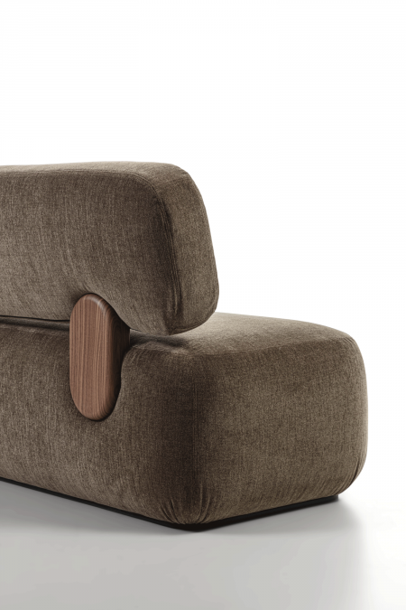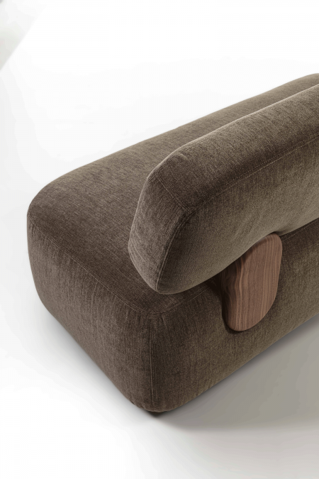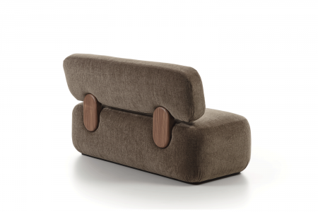 Sofà composed of two upholstered sections, dressed in leather or fabric, defining the seat and back. The sections are joined by a pair of solid wood supports, combining structural integrity with a refined aesthetic.